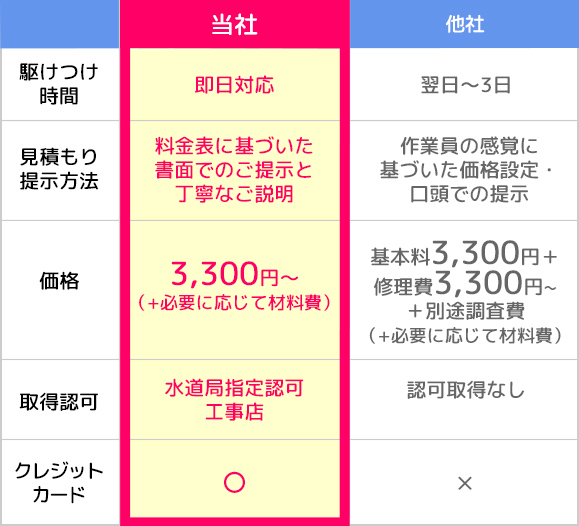 今後も水道局指定工事店として、正直で丁寧な接客、料金表に基づいた明朗会計で
